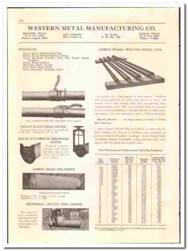 Original 1936 Oil and Gas trade vintage catalog for the WESTERN METAL MANUFACTURING COMPANY. Main office and plant were located at 520 Carolina Street, San Antonio, TX. Also located in Houston, El Paso and Dallas, TX.