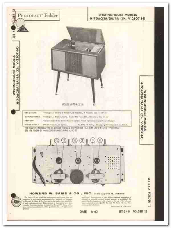 westinghouse models h-70acsxa stereo phonograph sams photofact manual