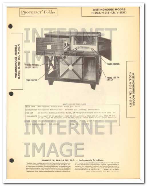 westinghouse models h203 h212 am fm radio phono sams photofact manual