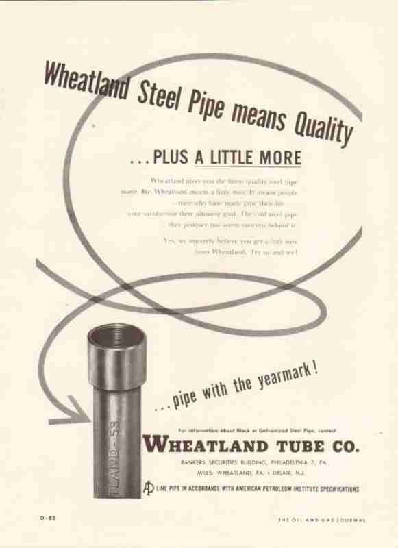 Wheatland Tube Company 1959 Vintage Ad Oil Field Steel Pipe Quality