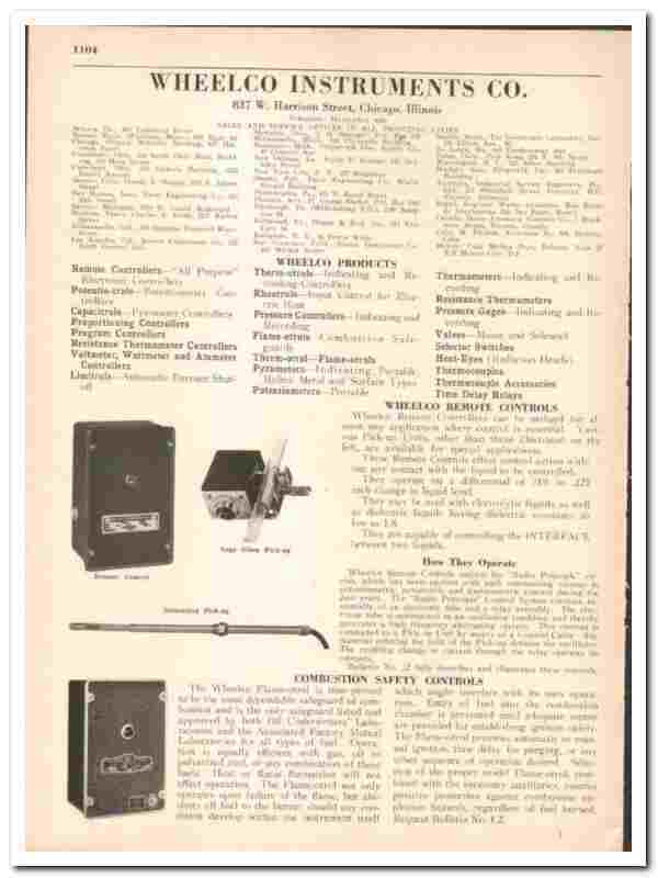 Original 1942 industrial trade vintage catalog for the WHEELCO INSTRUMENTS COMPANY. Main office and plant were located at 837 West Harrison Street, Chicago, IL.