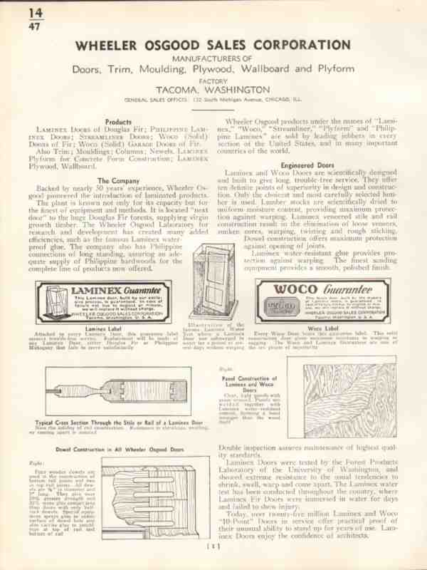 Wheeler Osgood Sales Corp 1941 Vintage Catalog Doors Woco Laminex