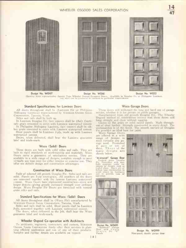 Original door trade vintage catalog for WHEELER OSGOOD SALES..