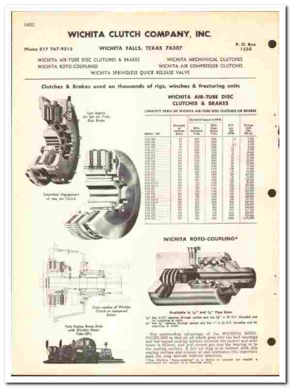 Original 1974 Oil and Gas trade vintage catalog for the WICHITA CLUTCH COMPANY, INC. Main office and plant were located in Wichita Falls, TX.