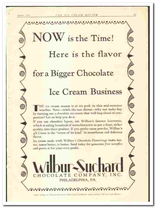 Wilbur-Suchard Chocolate Company 1928 vintage ice cream ad flavor