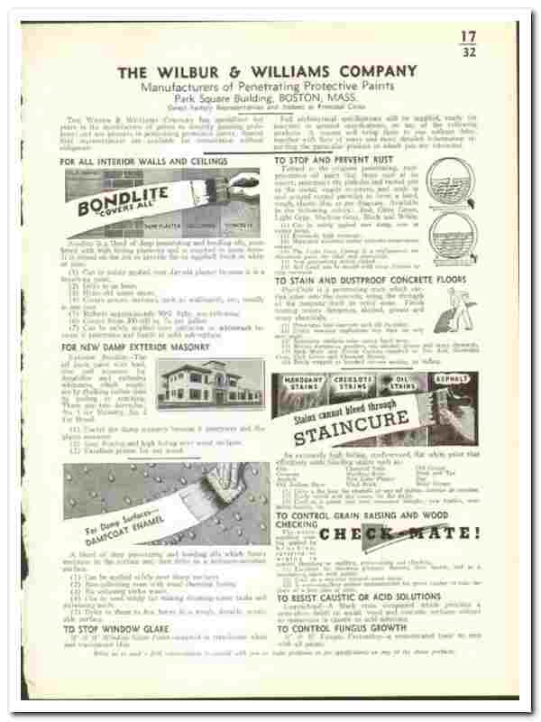 The Wilbur & Williams Company specialized for years in the manufacture of paints to simplify painting problems and are pioneers in penetrating protective paints.