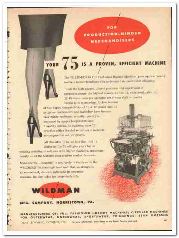 Wildman Mfg Company 1954 vintage textile ad hosiery machine efficient