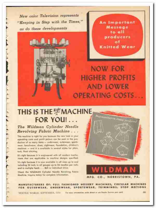 Wildman Mfg Company 1954 vintage textile ad hosiery machine efficient