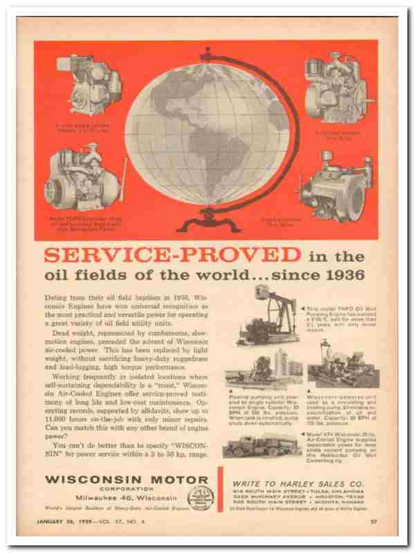 Wisconsin Motor Corp 1959 Vintage Ad Oil Field Engines Service-Proved