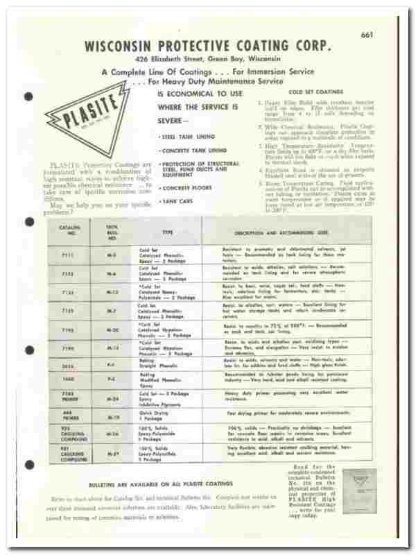 Wisconsin Protective Coating Corp 1960 vintage paint catalog Plasite