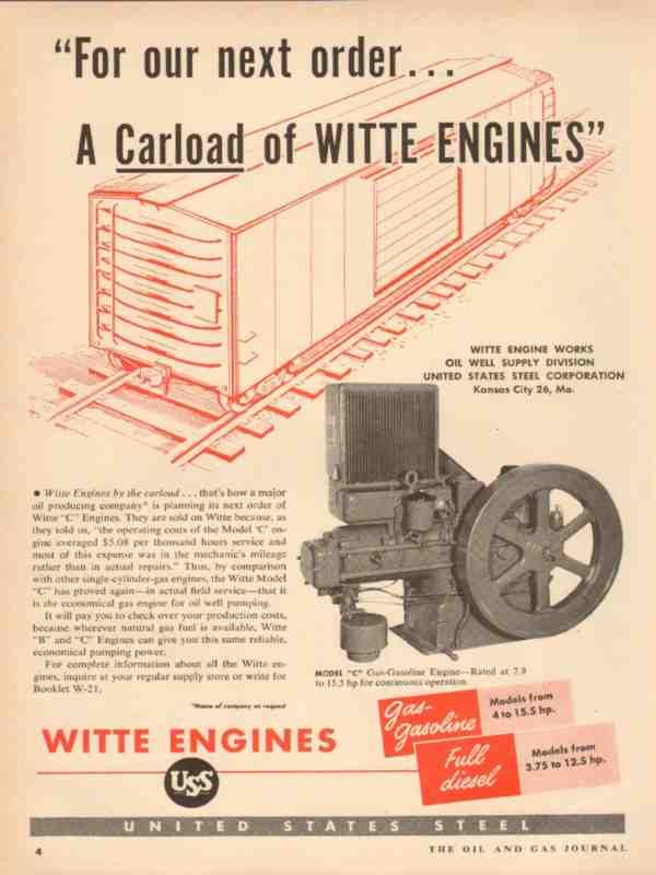 Witte Engine Works 1954 Vintage Ad Oil Field Our Next Order Carload