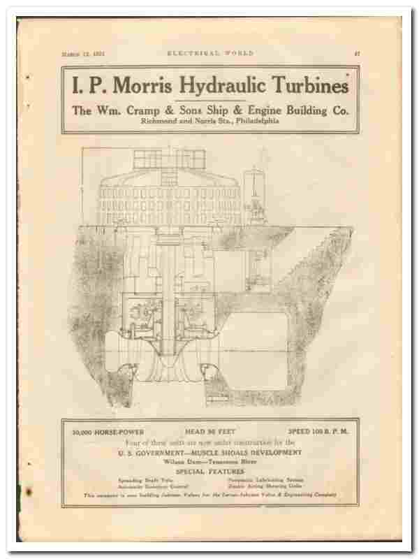 Original 1921 electrical trade vintage magazine ad for the WILLIAM CRAMP & SONS SHIP & ENGINE BUILDING COMPANY. Main office and plant were located at Richmond and Norris Streets, Philadelphia, PA.