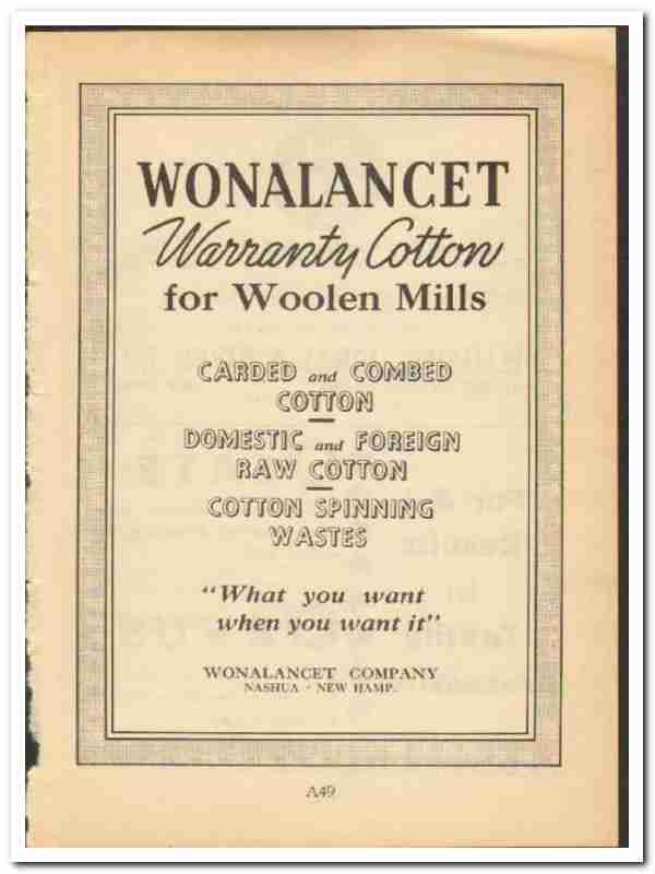 Wonalancet Company 1938 vintage textile ad warranty cotton woolen mill