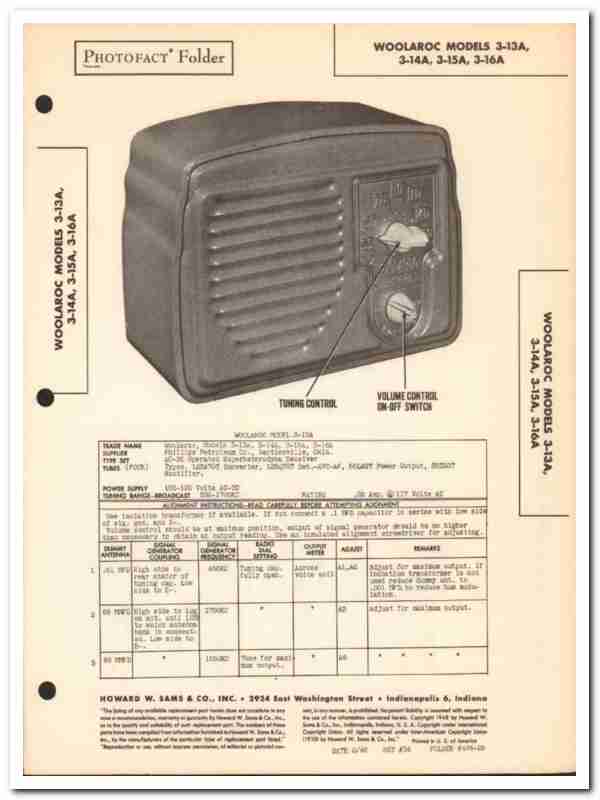 woolaroc model 3-13a 3-14a 3-15a 3-16a am radio sams photofact manual