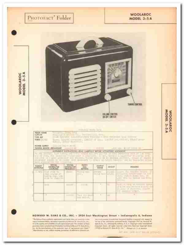 woolaroc model 3-5a 5-tube am radio receiver sams photofact manual