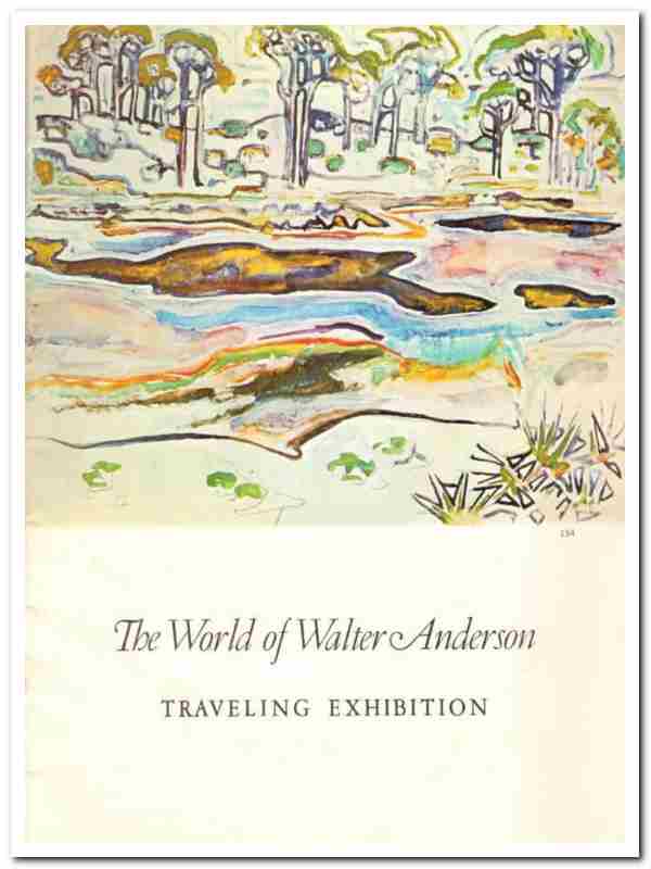 Soft covered book titled THE WORLD OF WALTER ANDERSON Traveling Exhibition 1967. A Traveling Exhibition of Drawings, Oils, Blockprints, Tempera, Watercolors organized by Brooks Memorial Art Gallery, Overton Park, Memphis, Tennessee. The book is in VG condition, pages are clean and intact and the binding is tight. Would make a marvelous addition to any art library.