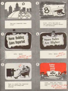Original vintage broadcasting trade ad for WTAE TV Channel 4 of Pittsburgh, PA. Can You Identify This City? What to reach the families who are building and buying? Take the homes reached station! Old 1965 television broadcasting industry advertisement.
