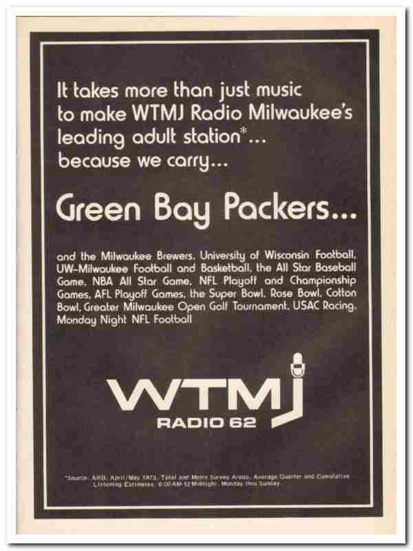 wtmj 1973 milwaukee radio 62 green bay packers media vintage ad