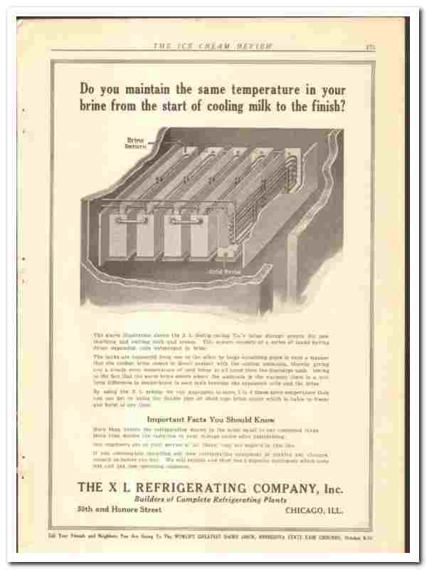X L Refrigerating Company 1921 vintage ice cream ad Brine Storage