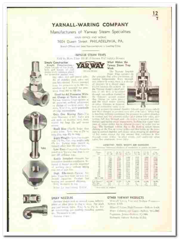 Yarnall-Waring Company 1939 vintage industrial catalog steam traps