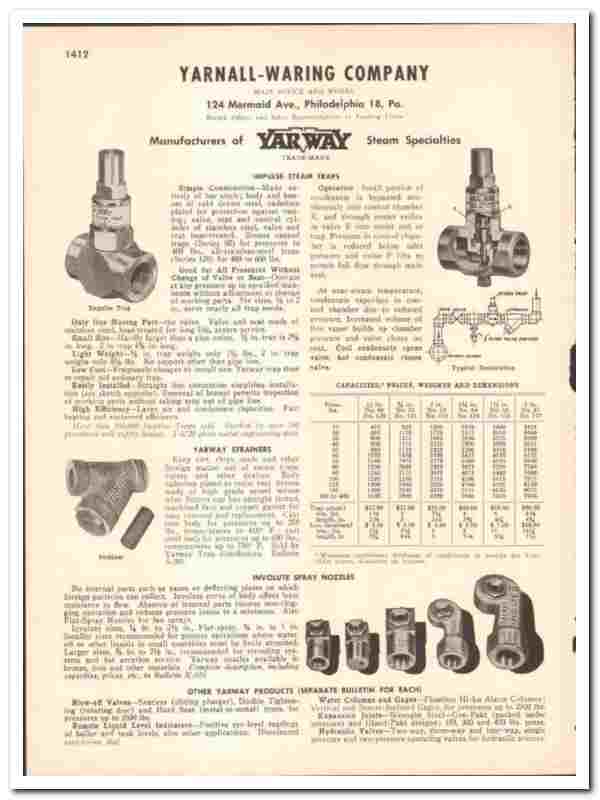 Yarnall-Waring Company 1947 vintage industrial catalog YARWAY steam
