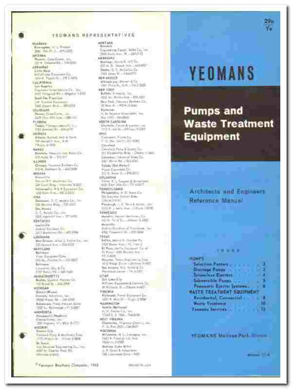 Yeomans Brothers Company 1966 vintage plumbing catalog pumps waste