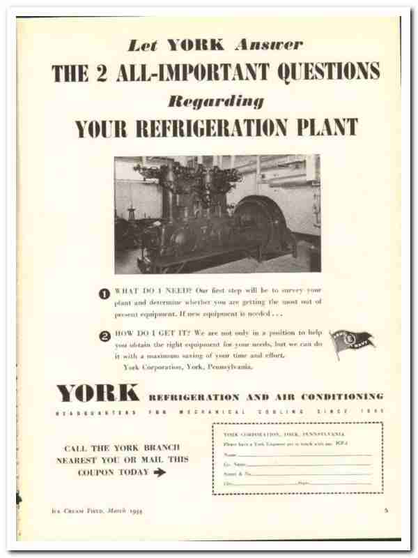 York Corp 1944 vintage ad ice cream refrigeration plant questions
