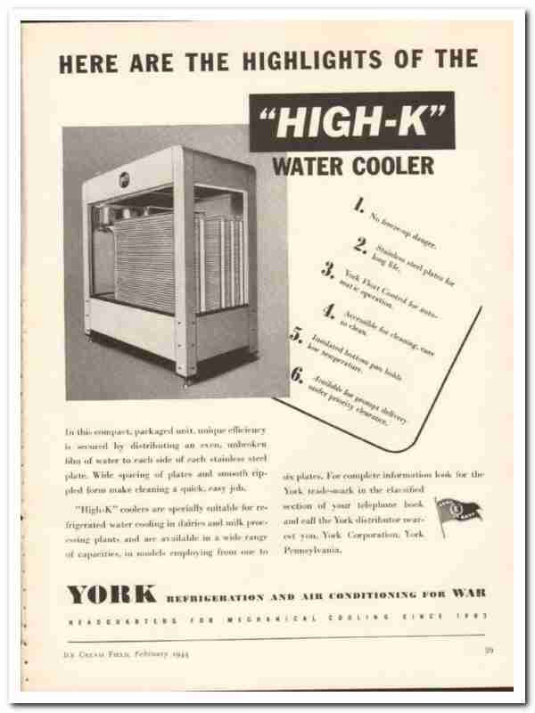 York Corp 1944 vintage ad ice cream refrigeration water cooler High-K