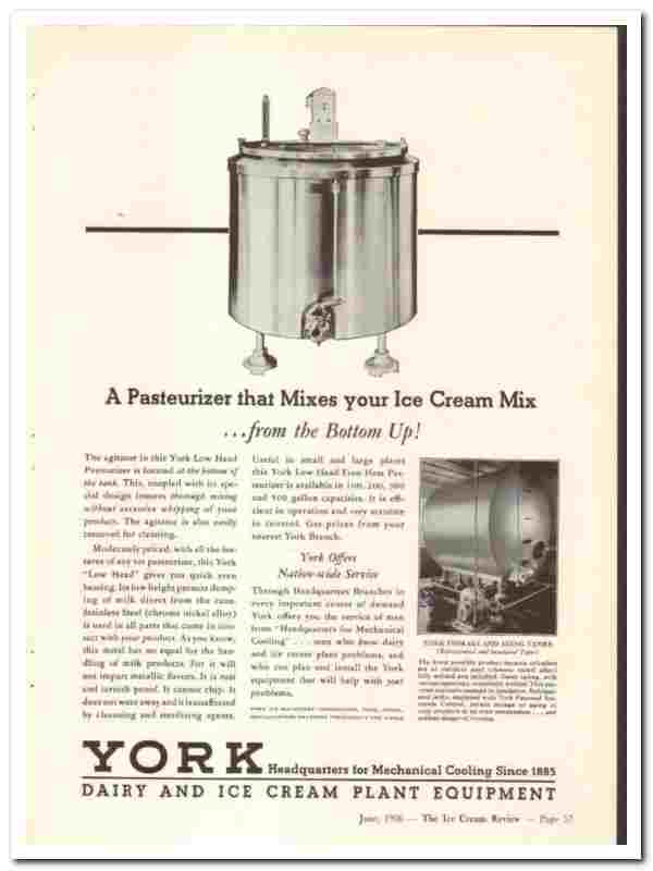 York Ice Machinery Corp 1936 vintage ice cream ad Pasteurizer