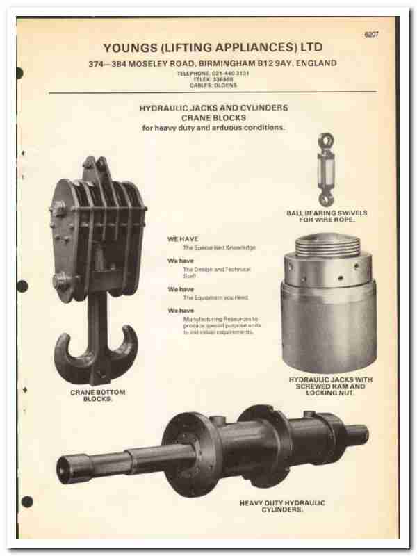 Original 1977 Oil and Gas trade vintage catalog for the YOUNGS (LIFTING APPLIANCES) LTD. Main office and plant was located at 374-384 Moseley Road, Birmingham, England.