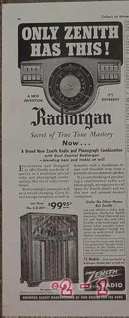 zenith radio corporation 1940 radiorgan secret of true tone vintage ad