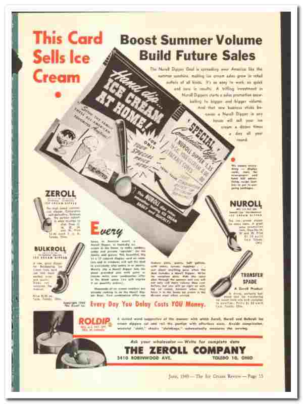 Zeroll Company 1949 vintage ice cream ad Nuroll Bulkroll Dipper
